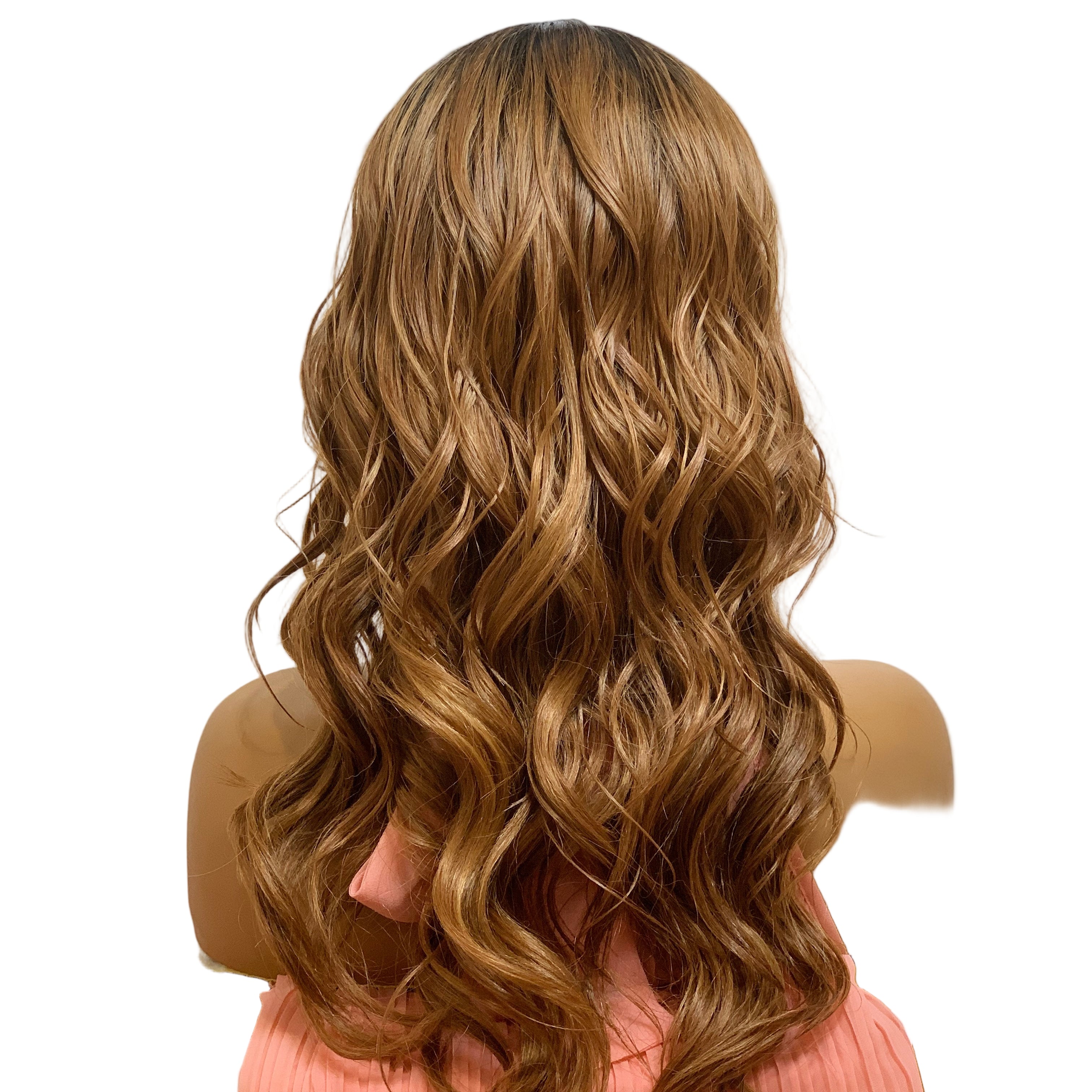 Elevate your look with the ALICIA Synthetic Luxury wig, a stunning blend of sophistication and effortless style. This 20-inch beauty features a dark rooted honey brown base that creates a naturally dimensional appearance, while the lace part seamlessly blends with your hairline for an undetectable finish. Loose, bouncy curls cascade throughout, delivering movement and volume that turns heads. Crafted from premium synthetic fibers, this wig maintains its gorgeous curl pattern wash after wash, making it the perfect low-maintenance choice for anyone seeking a glamorous, polished look without the daily styling commitment.