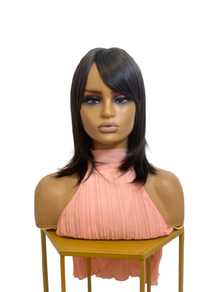 Get ready to turn heads with our stylish BOB WIG! Made with high-quality synthetic material, this 16-inch bob wig features a swoop to the side with a flirty light bang and a sleek straight style. Easily switch up your look by parting it on the right side or adding a touch of color. Get ready to rock this versatile and trendy wig!