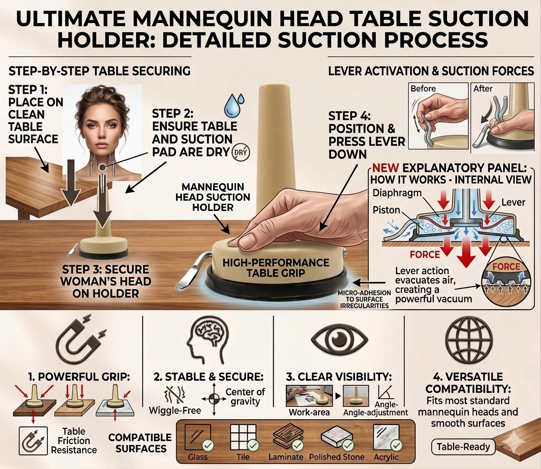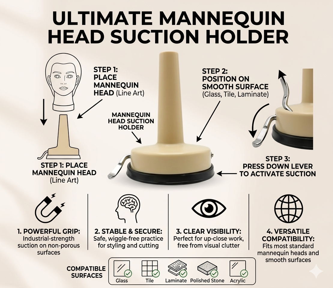 Suction Cup Manikin Wig Head Stand | Secure & Versatile Styling Tool